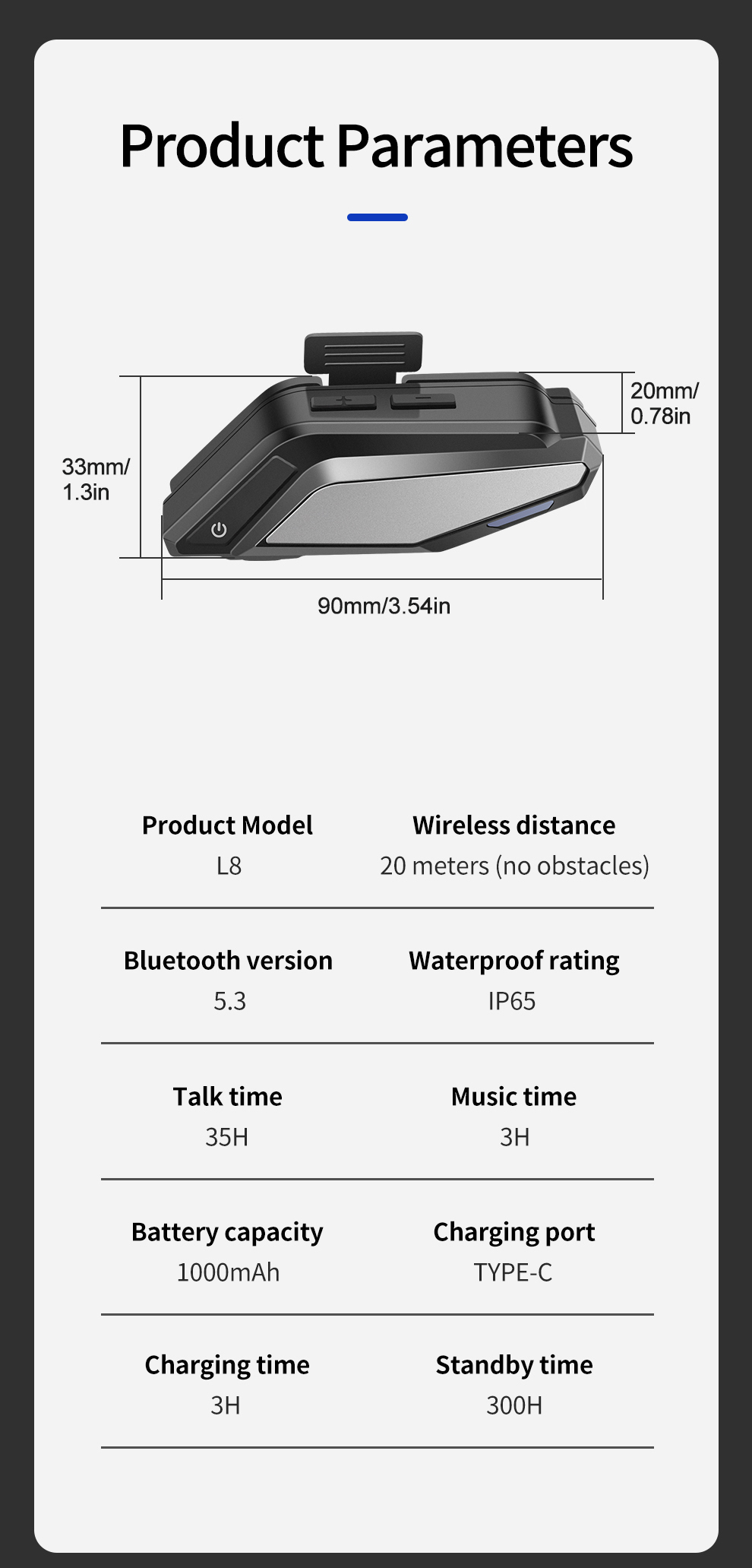 Helmet Headset L8(1000mAh)